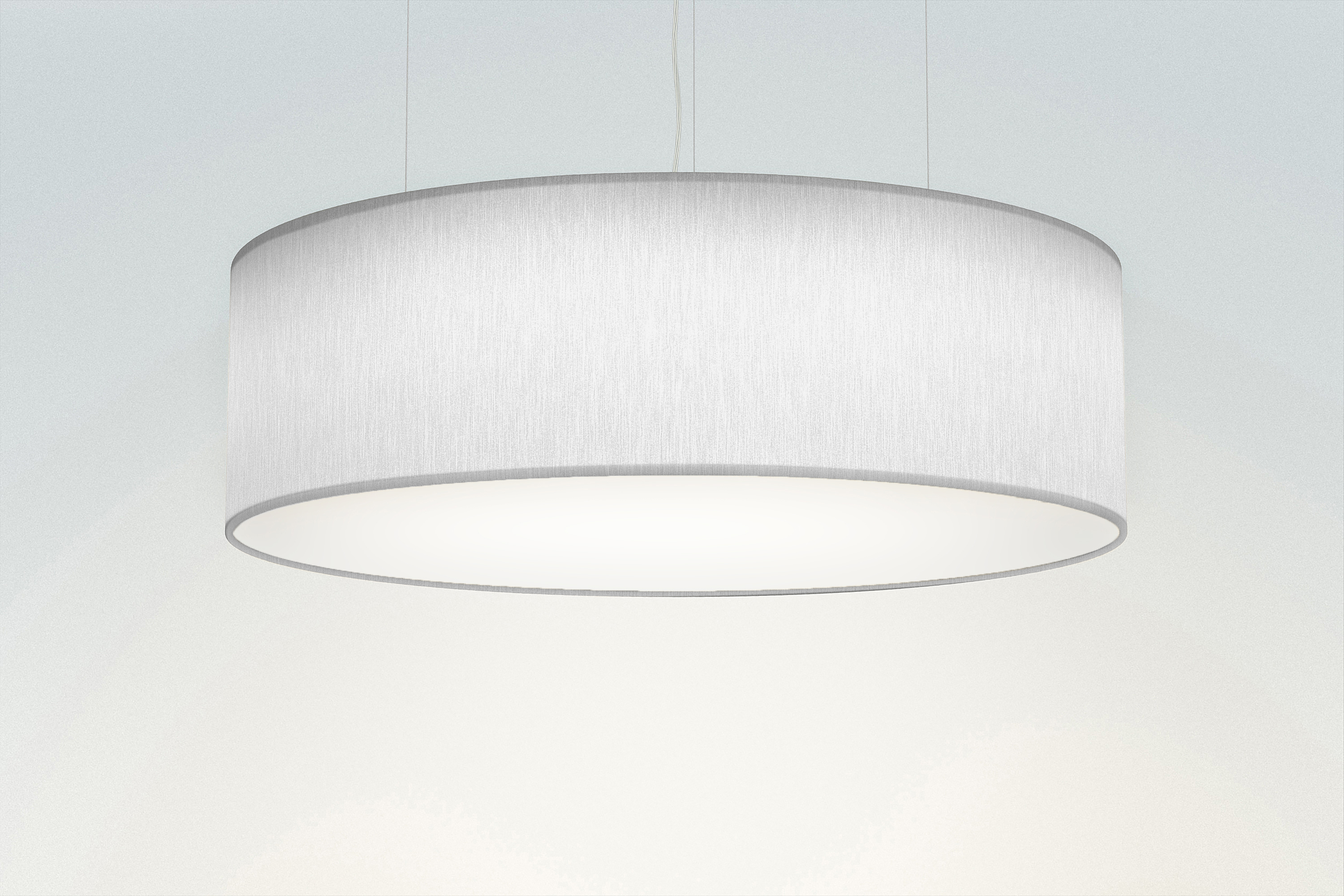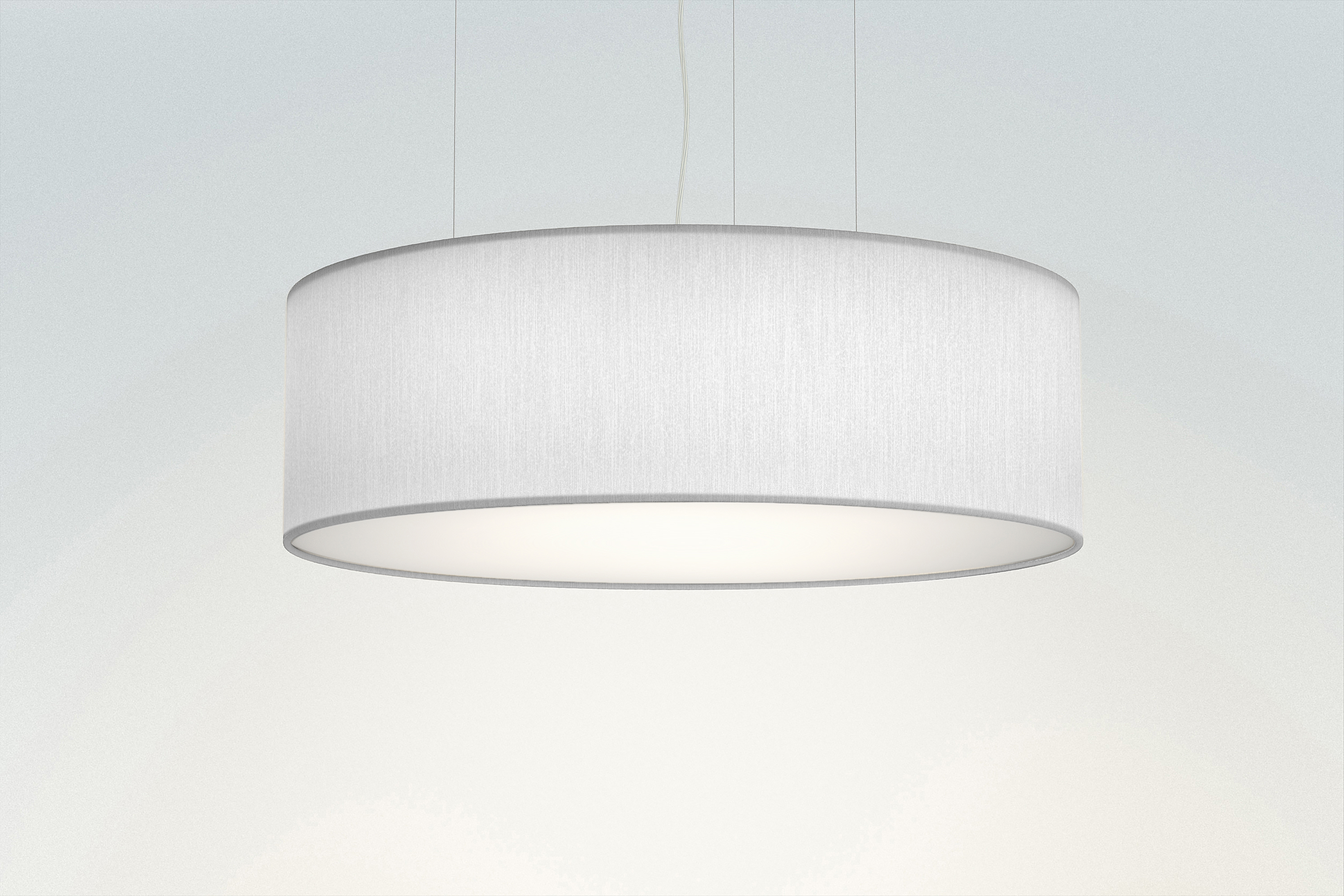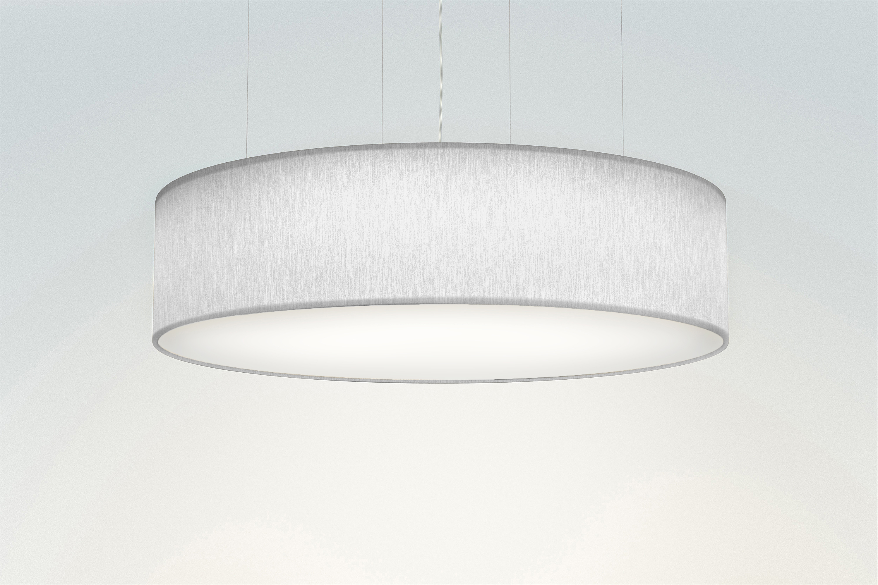 MONA, wohnlich, blendfrei und effizient. Die Textilleuchte MONA eignet sich für Wohn- und Aufenthaltsräume, für Säle und für Foyers. Aber ebenso für Büros und Schulräume.