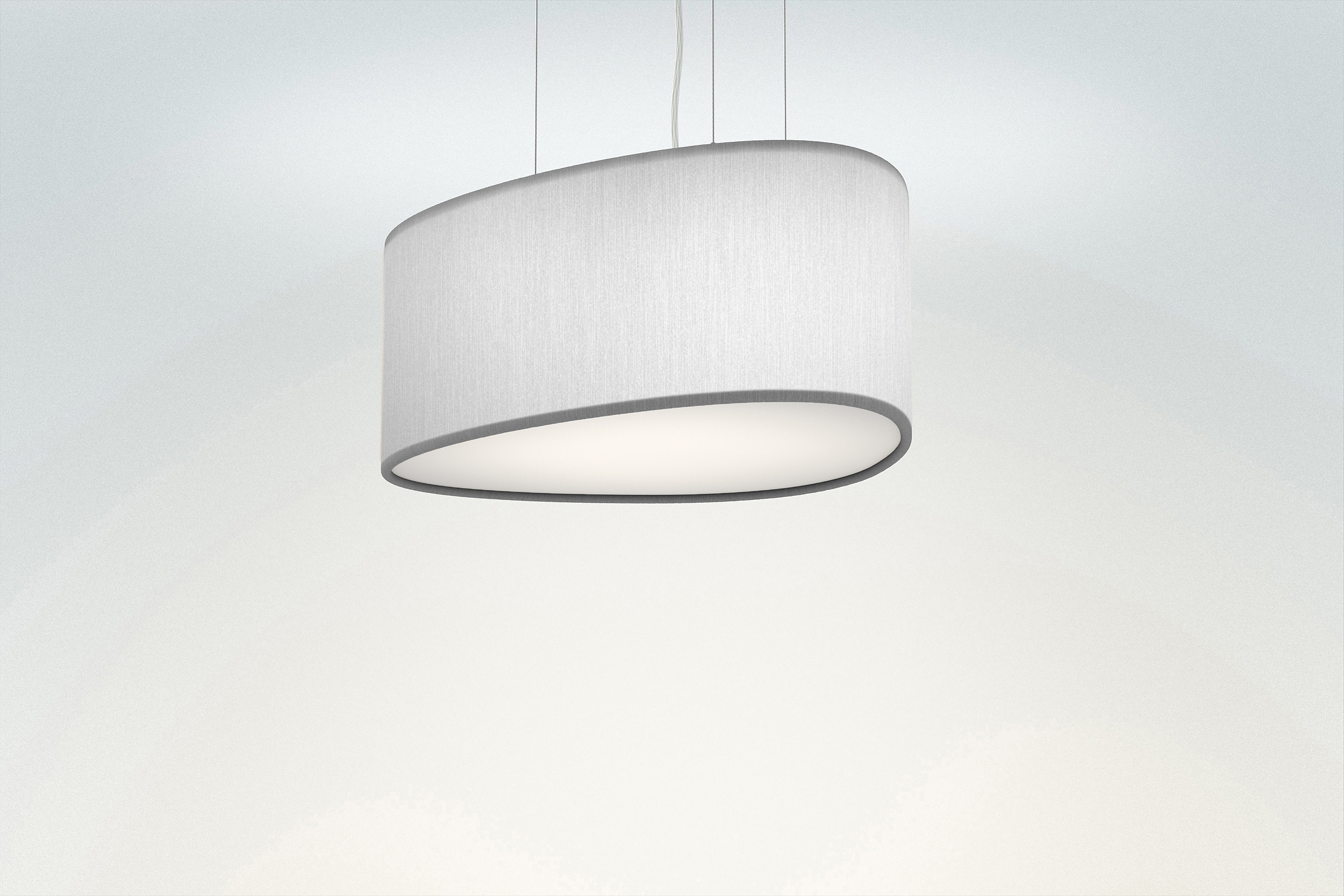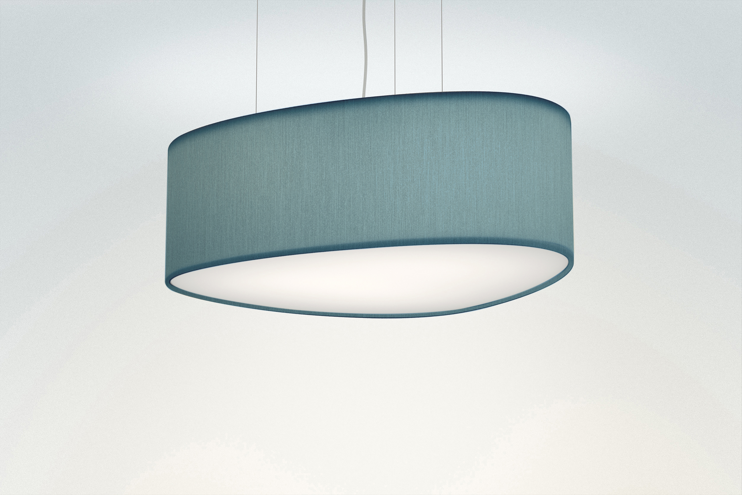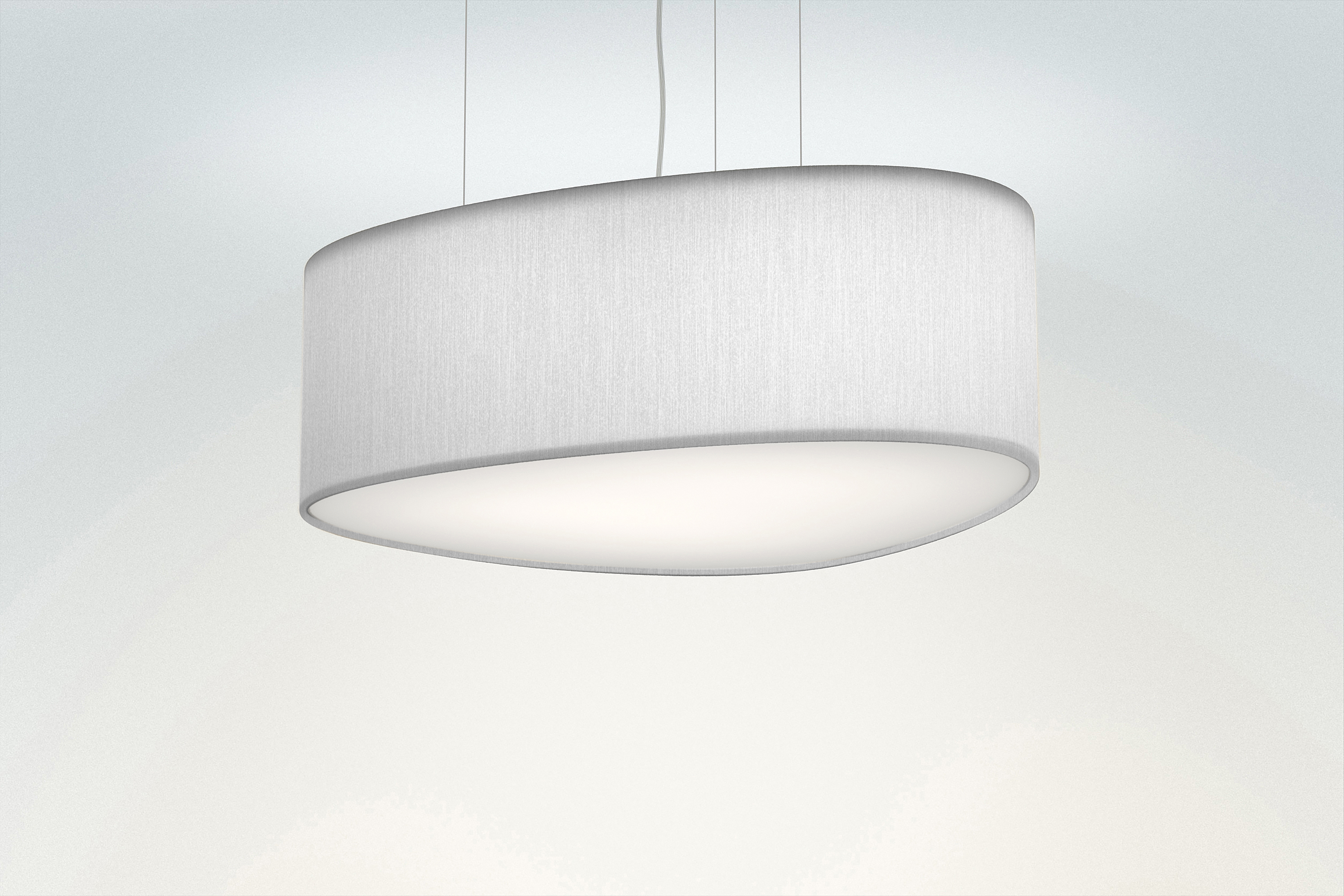NINA, die textile Leuchte in ungewöhnlicher und überraschender, freier Form; wohnlich, blendfrei und effizient. NINA eignet sich für Wohn-, Arbeits-, Versammlungs- und Konferenzräume.