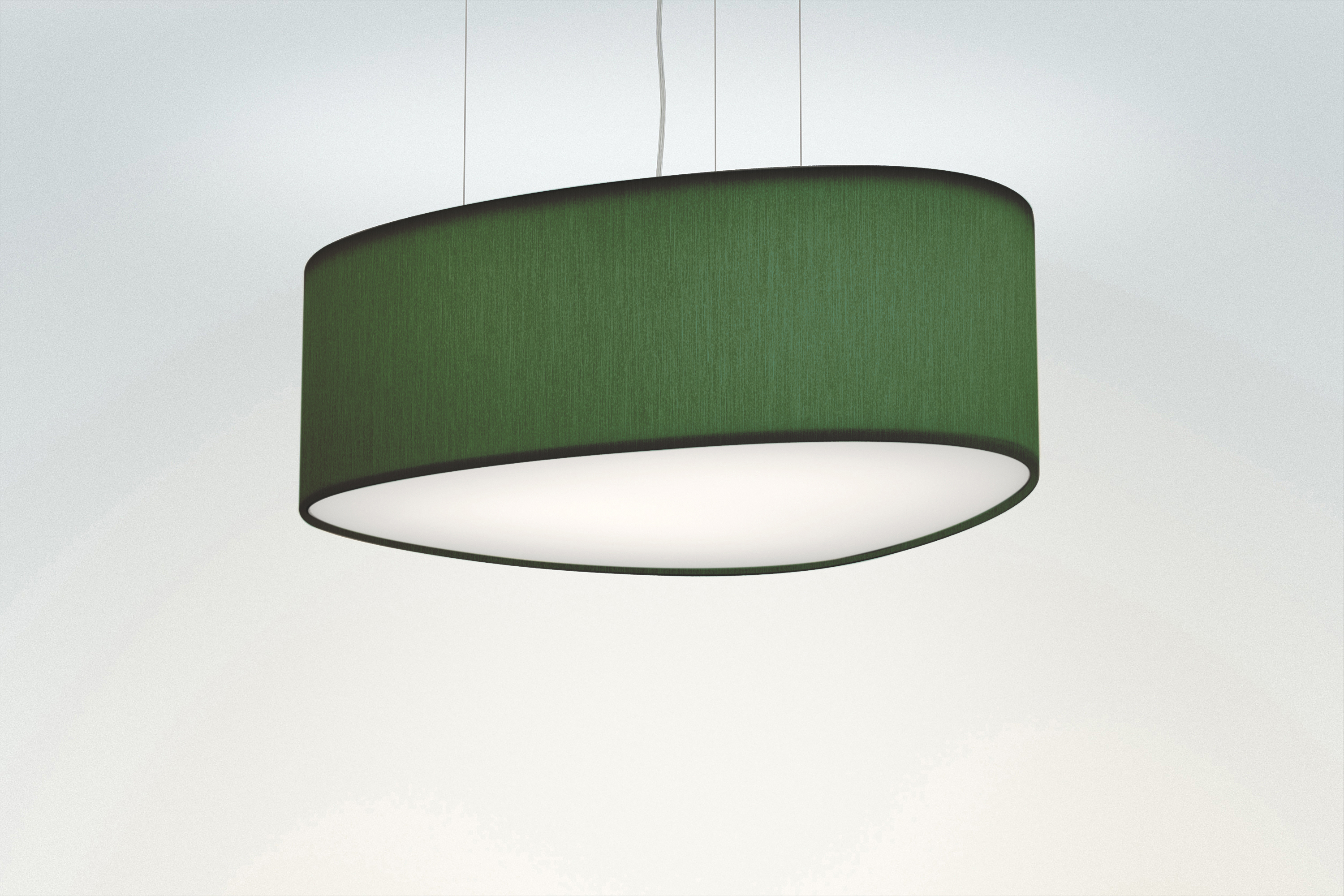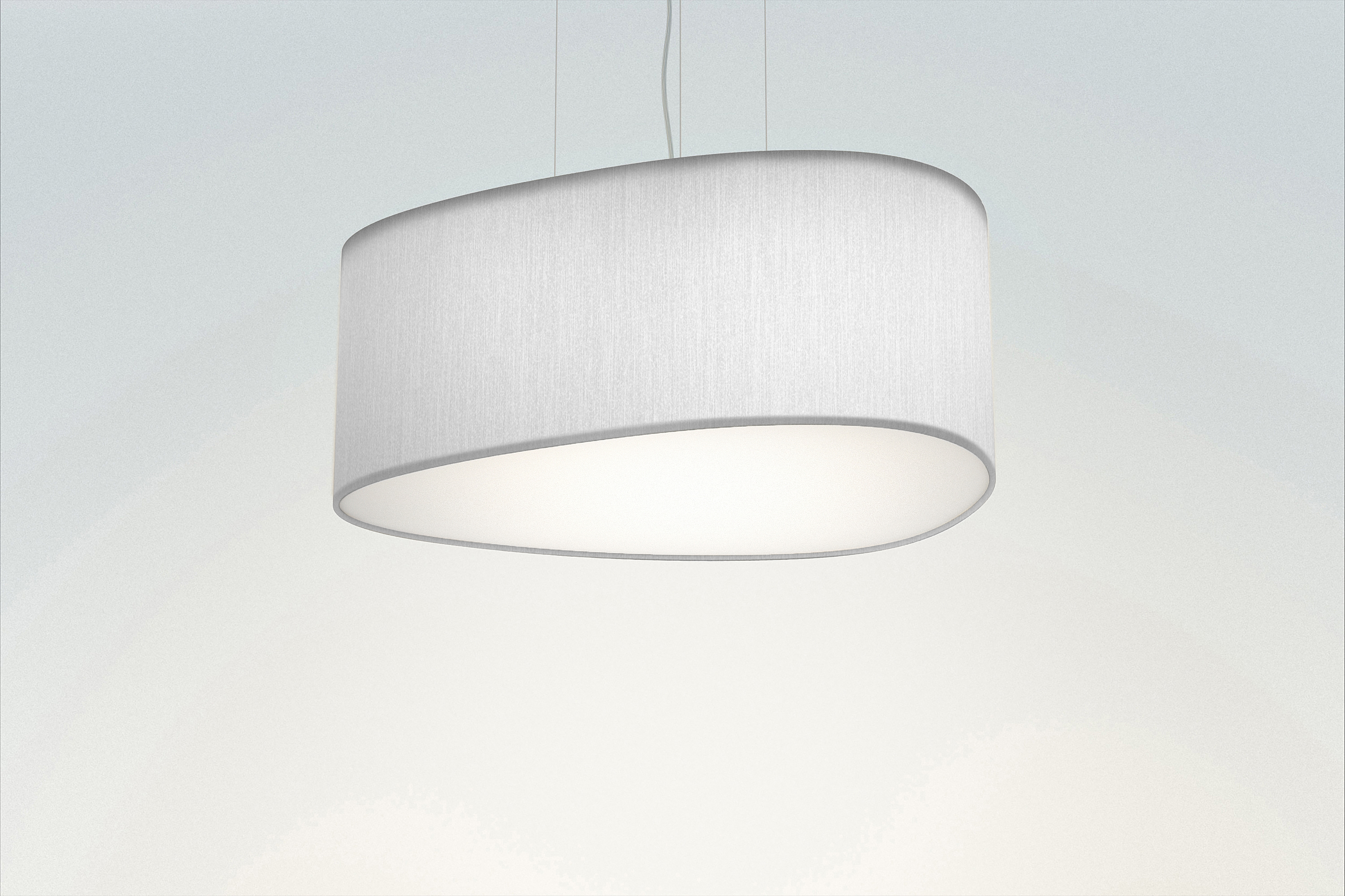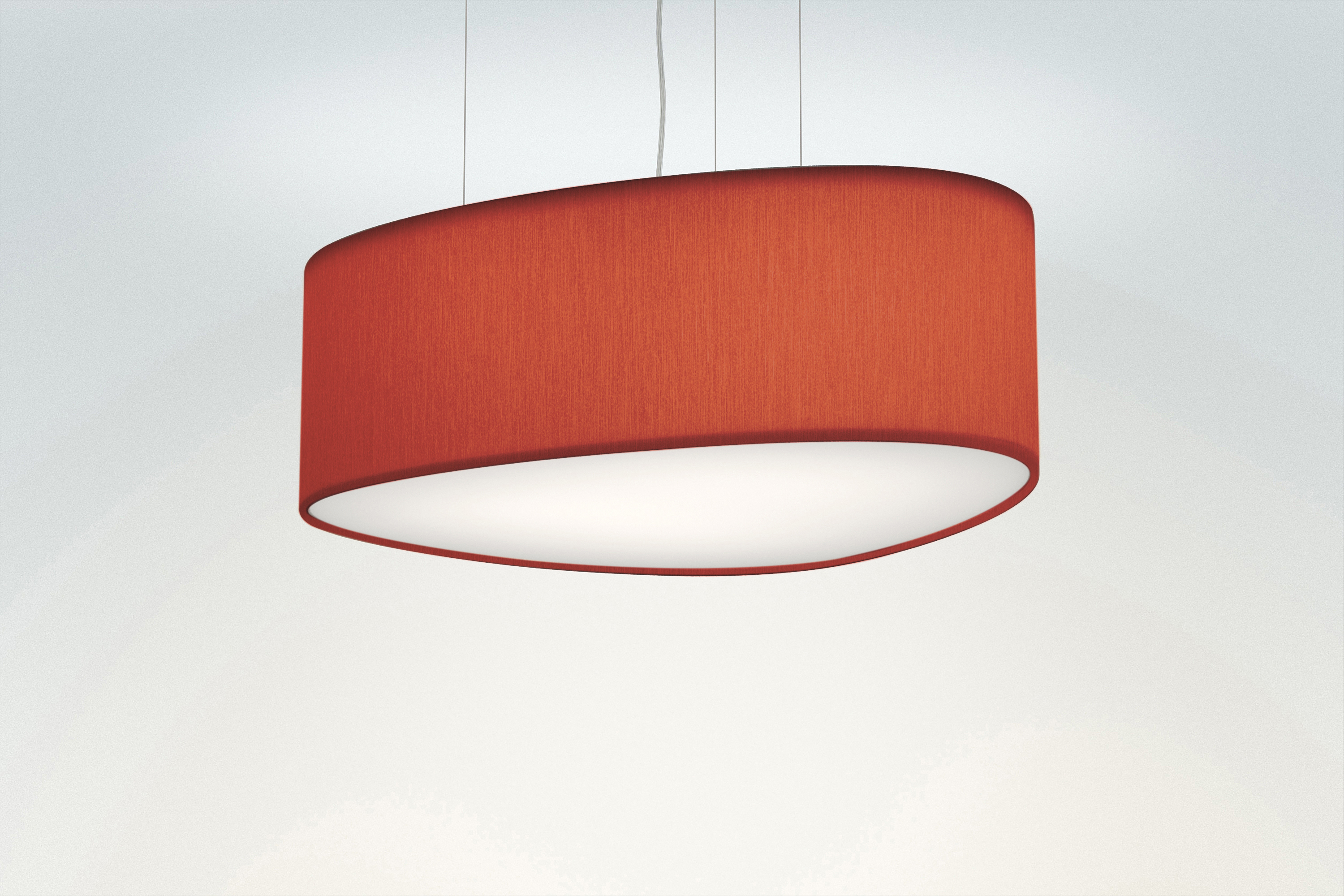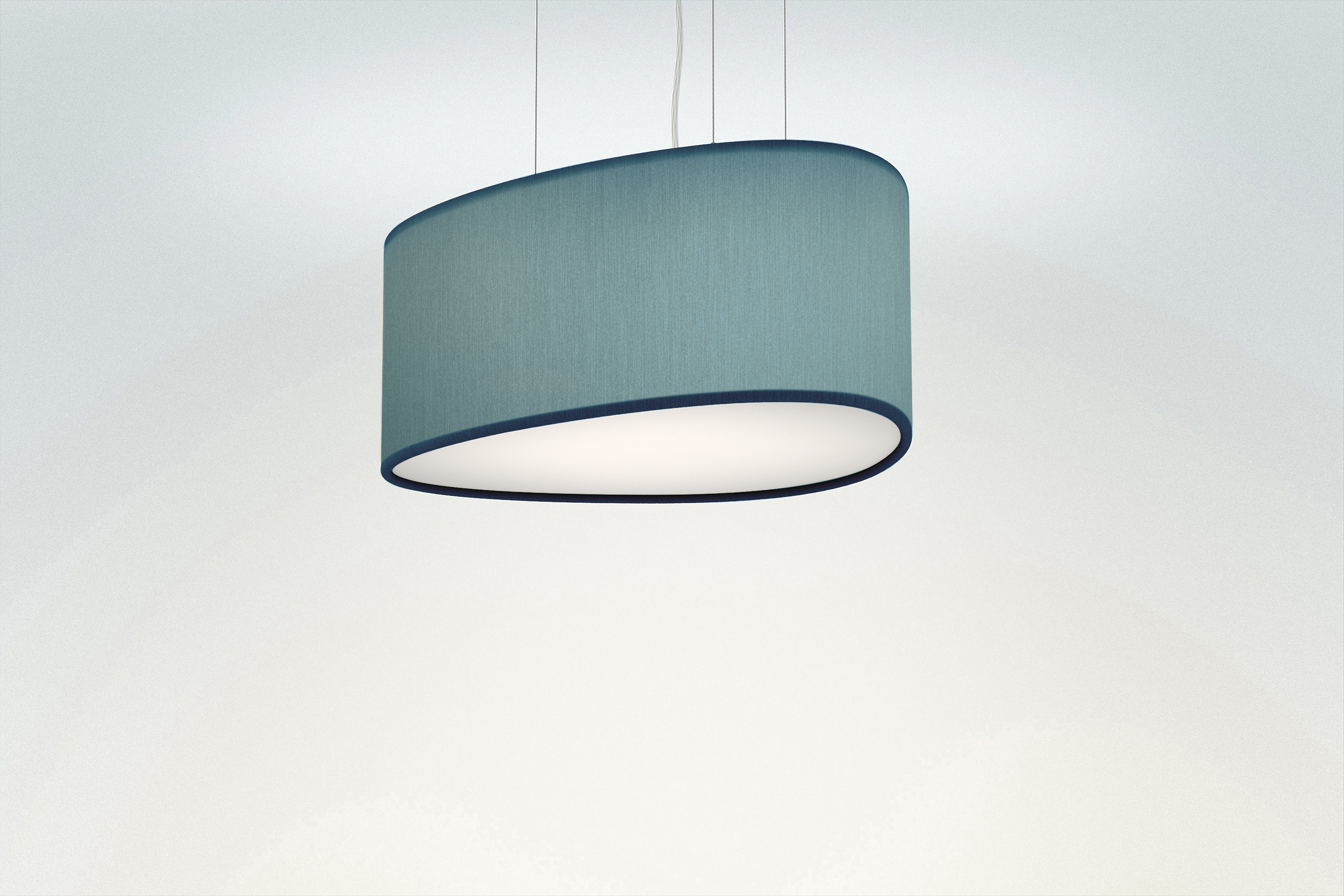 NINA, die textile Leuchte in ungewöhnlicher und überraschender, freier Form; wohnlich, blendfrei und effizient. NINA eignet sich für Wohn-, Arbeits-, Versammlungs- und Konferenzräume.