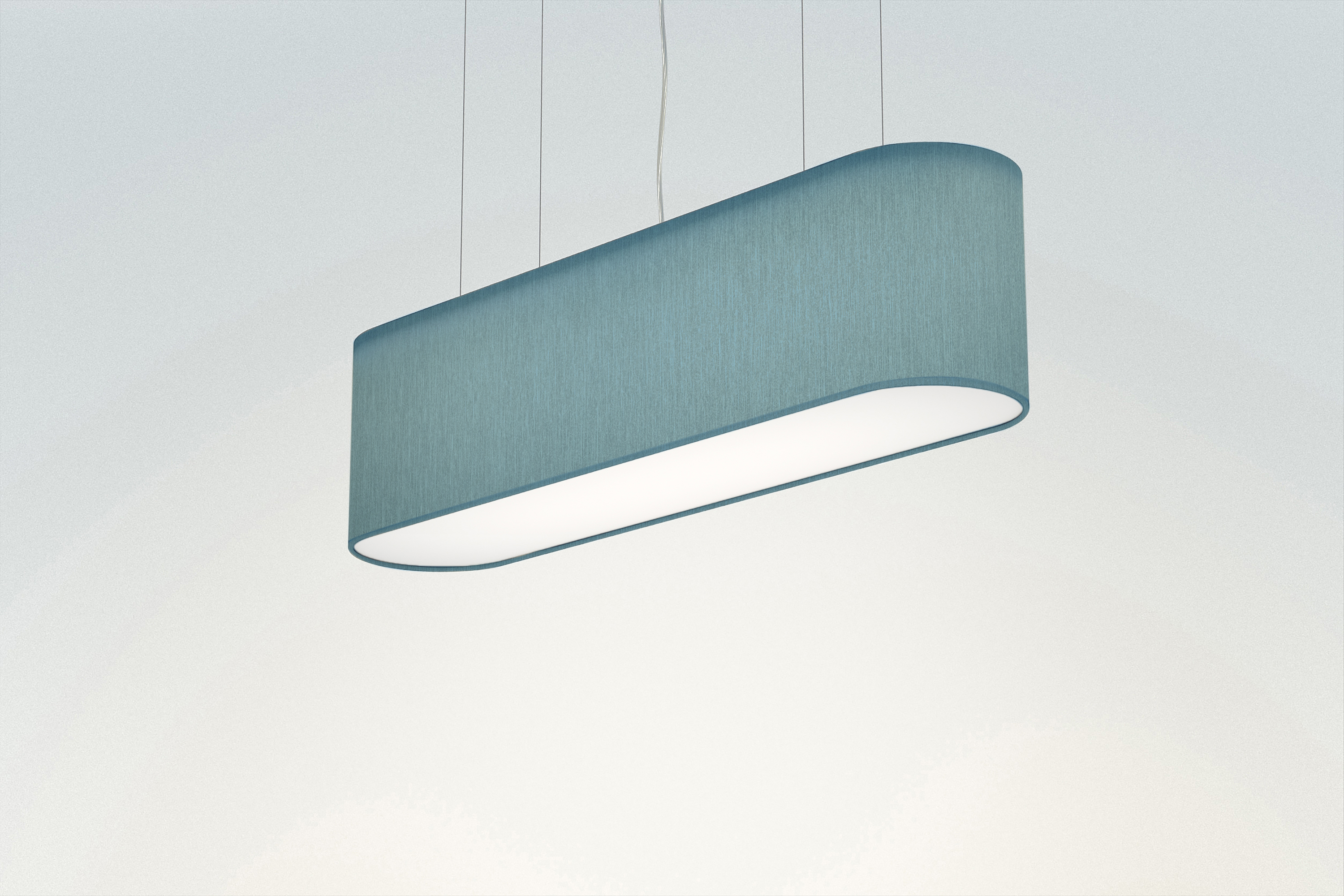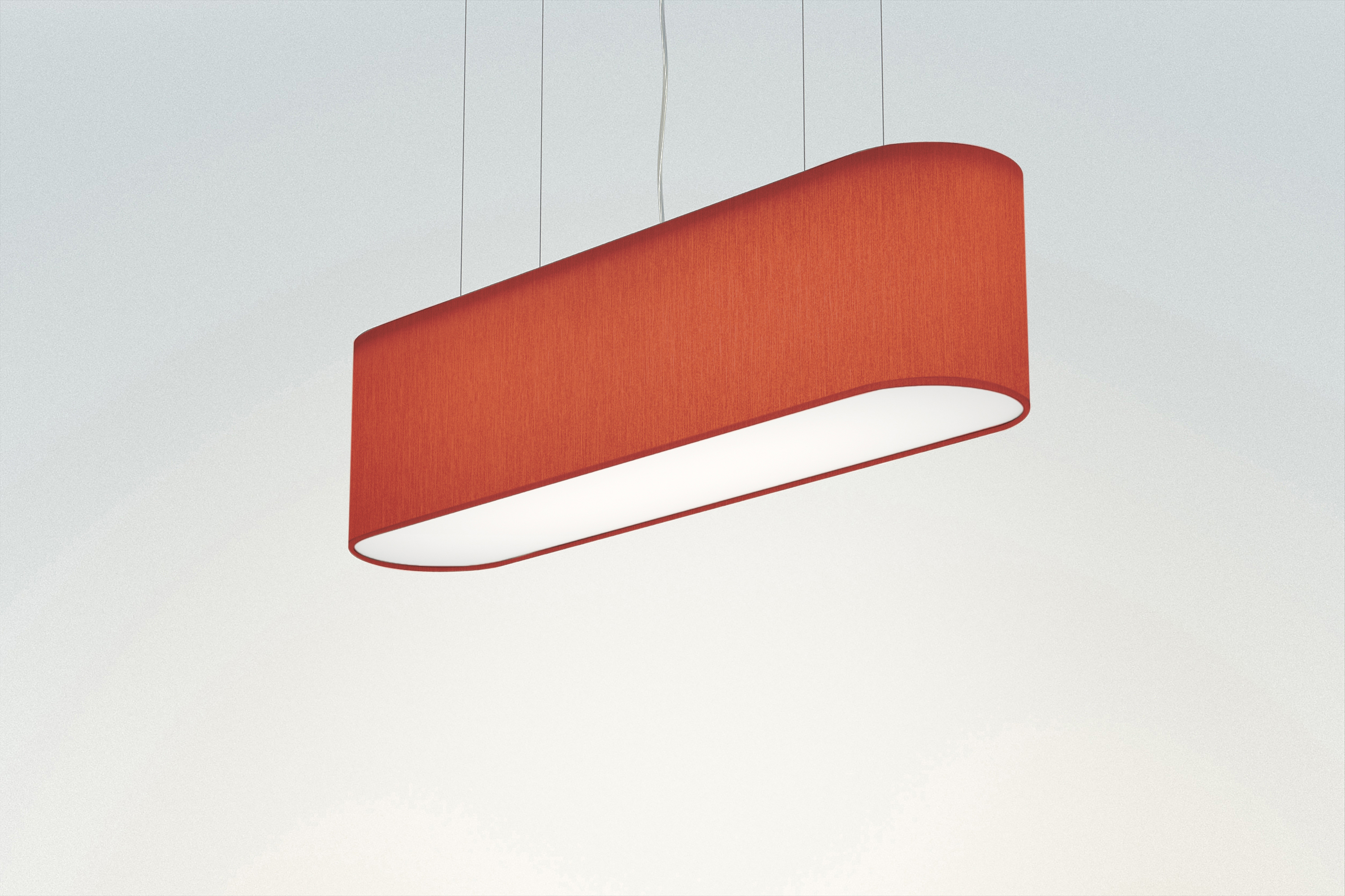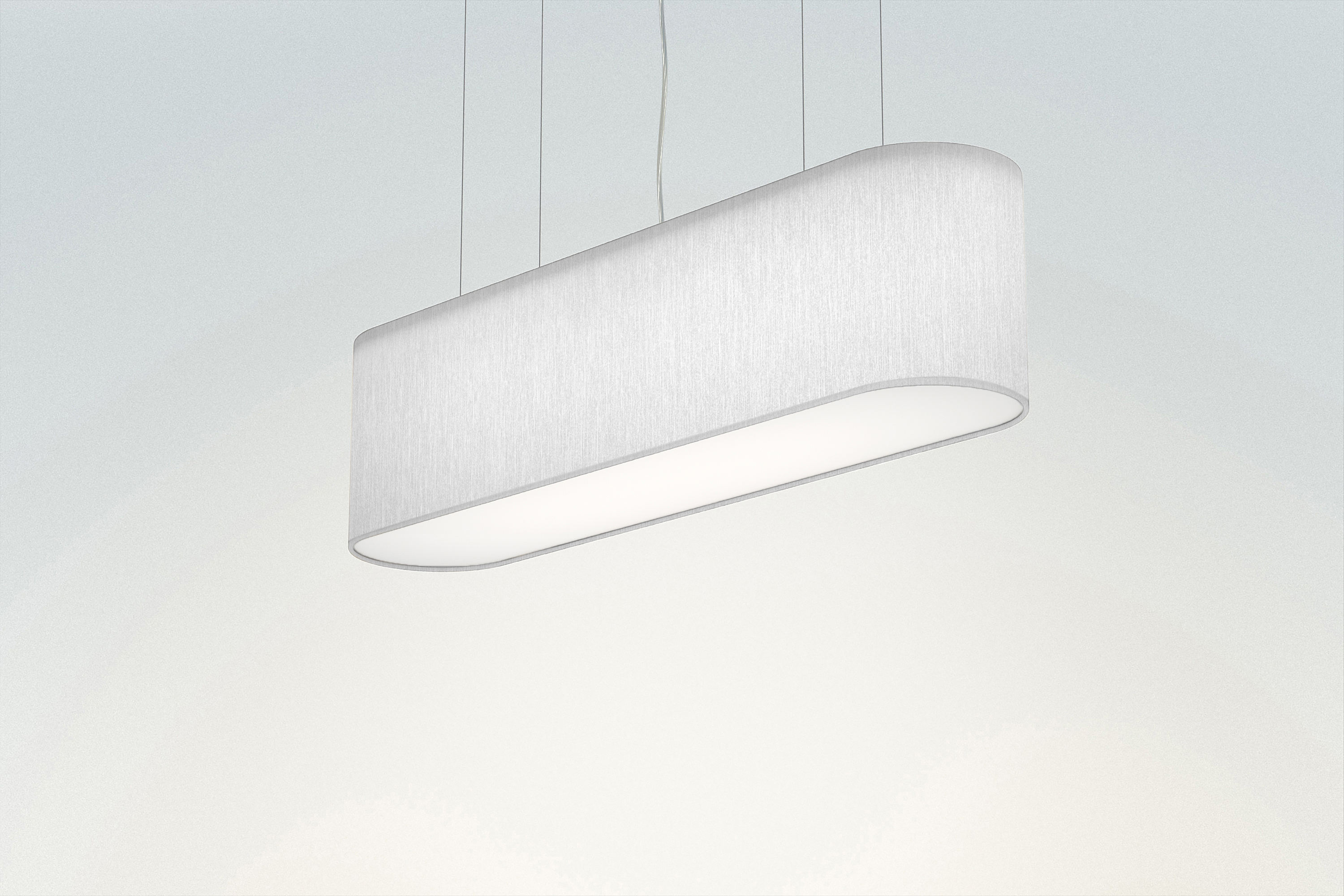 URS, die textile Leuchte mit klarer Richtung. Eine überraschend einfache Form. Wohnlich, energieeffizient, mit sehr gutem UGR-Wert. URS eignet sich für repräsentative Räume, im Foyer, in der Lounge, ebenso über Tischen und Tresen.